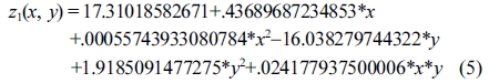 Response surface equation of model-predicted hydroxyl number(z4) versus [temperature(x) and SBR(y)]: