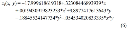 Response surface equation of model-predicted lignocelluloseliquefaction yield(z1) versus [temperature(x) and sulfuric acid concentration(y)]: