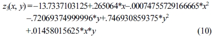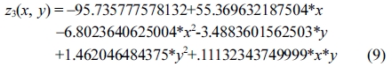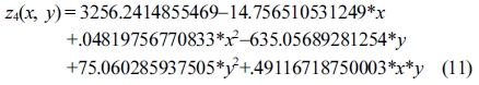 Response surface equation of model-predicted acid number(z3) versus [temperature(x) and sulfuric acid concentration(y)]: