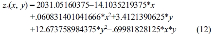 Response surface equation of model-predicted hydroxyl number(z4) versus [temperature(x) and sulfuric acid concentration(y)]: