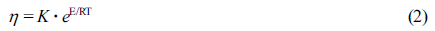 There existed a linear relationship between ln η and 1/T, so the viscosity of the polymer dropped with increasing temperature.
