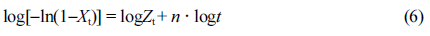 where Zt is the crystallization rate constant, and n is the Avrami exponent related to the mechanism involved crystal nucleation and growth of crystalline phases. The above equation can be converted to the following form, which was first proposed by Jeziorny,26,37-39