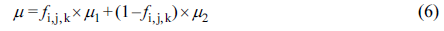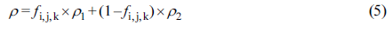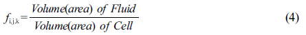 각 i, j, k번째 격자 내에서 차지하는 유동체의 부피비로 식 (4)와 같이 정의된다.
