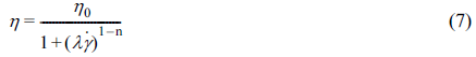 model은 전단변형률 속도에 따른 점도의 함수이며 η0는 초기