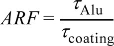 AA 6061합금 표면에서 얼음을 제거하기 위한 최대 전단 응력이고, tcoating는 코팅된 표면에서의 최대 전단 응력을 의미한다. 따라서 비교 지표가 되는 AA 6061합금의 ARF는 1이며, 결빙 방지 코팅 소재가 적용되어 tcoating의 값이 작게 되면 ARF는 1 이상으로 증가한다.
