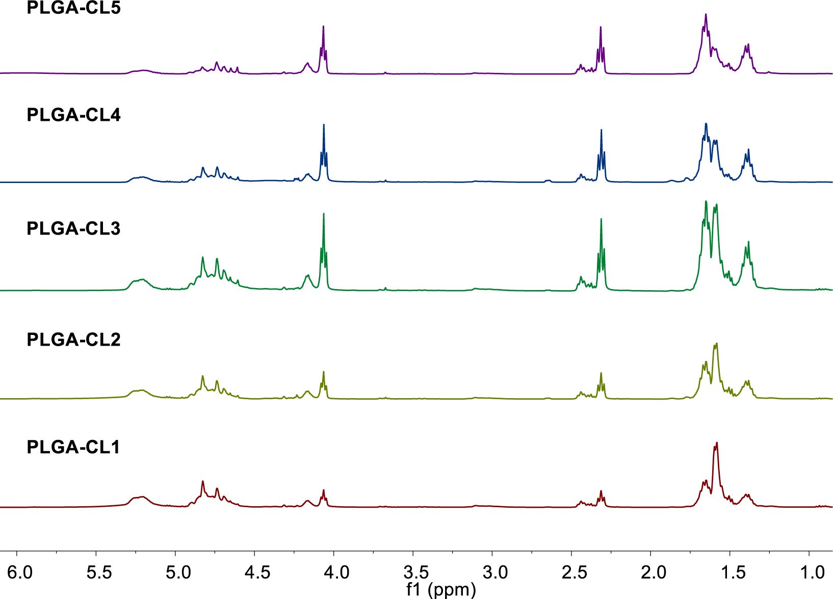 Figure 5 1H NMR spectra of PLGA-CL with different content of CL |