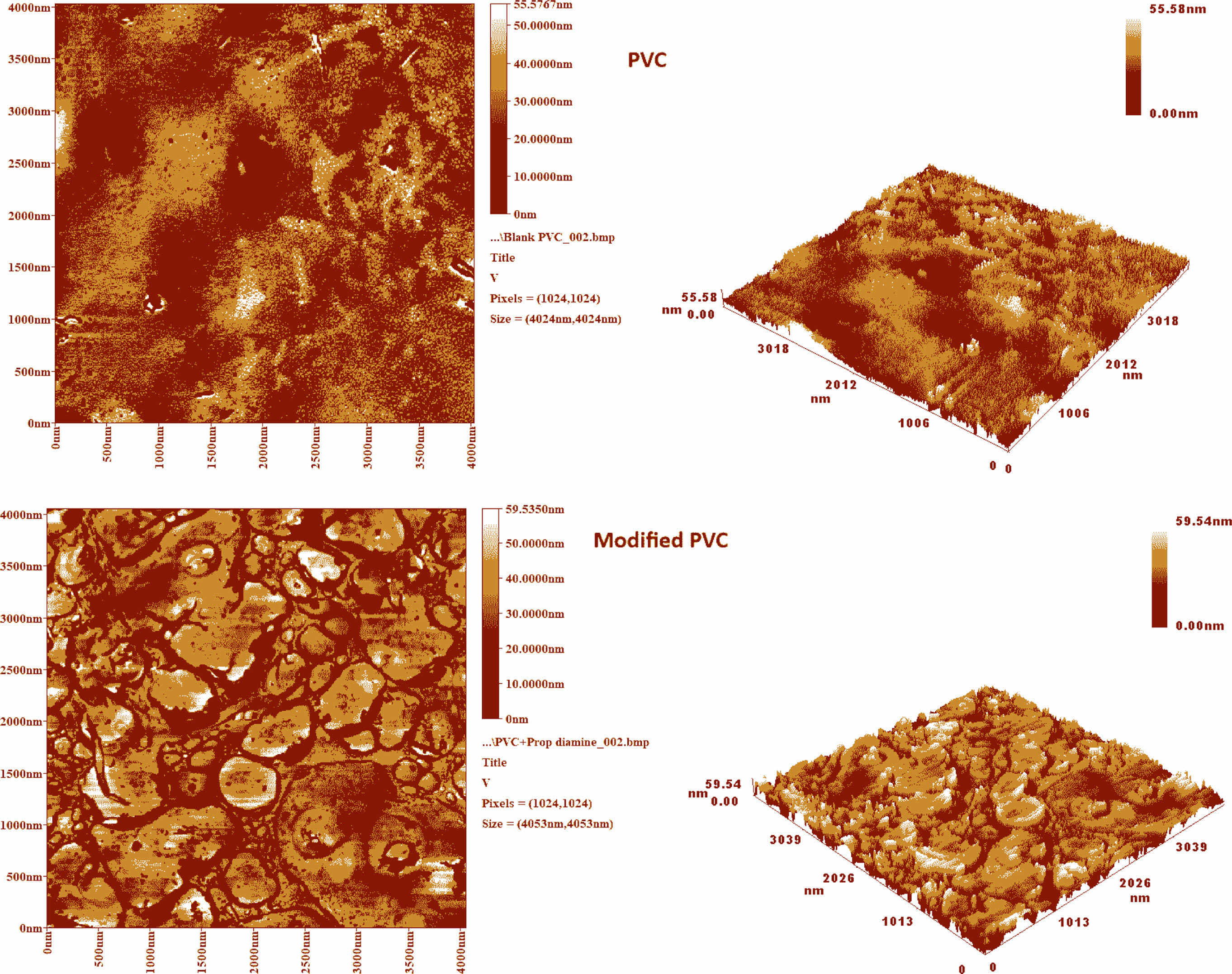 Fabrication of chemically modified PVC film: In order to create PVC films that are updated with propylene di-amine, the solution was fabricated by dissolving 5 g of PVC and 30 mg of propylene di-amine in THF. The total volume of the solution was adjusted to 100 mL. Subsequently, the combination underwent the same casting procedure illustrated in the above section.