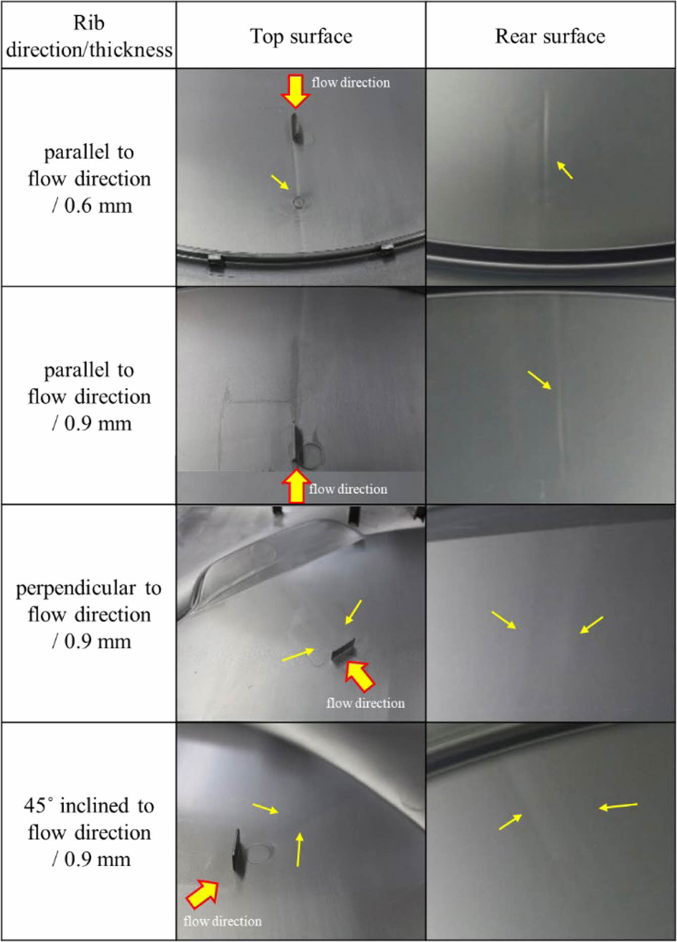 Figure 6 Effect of thickness in rib on surface appearance. |