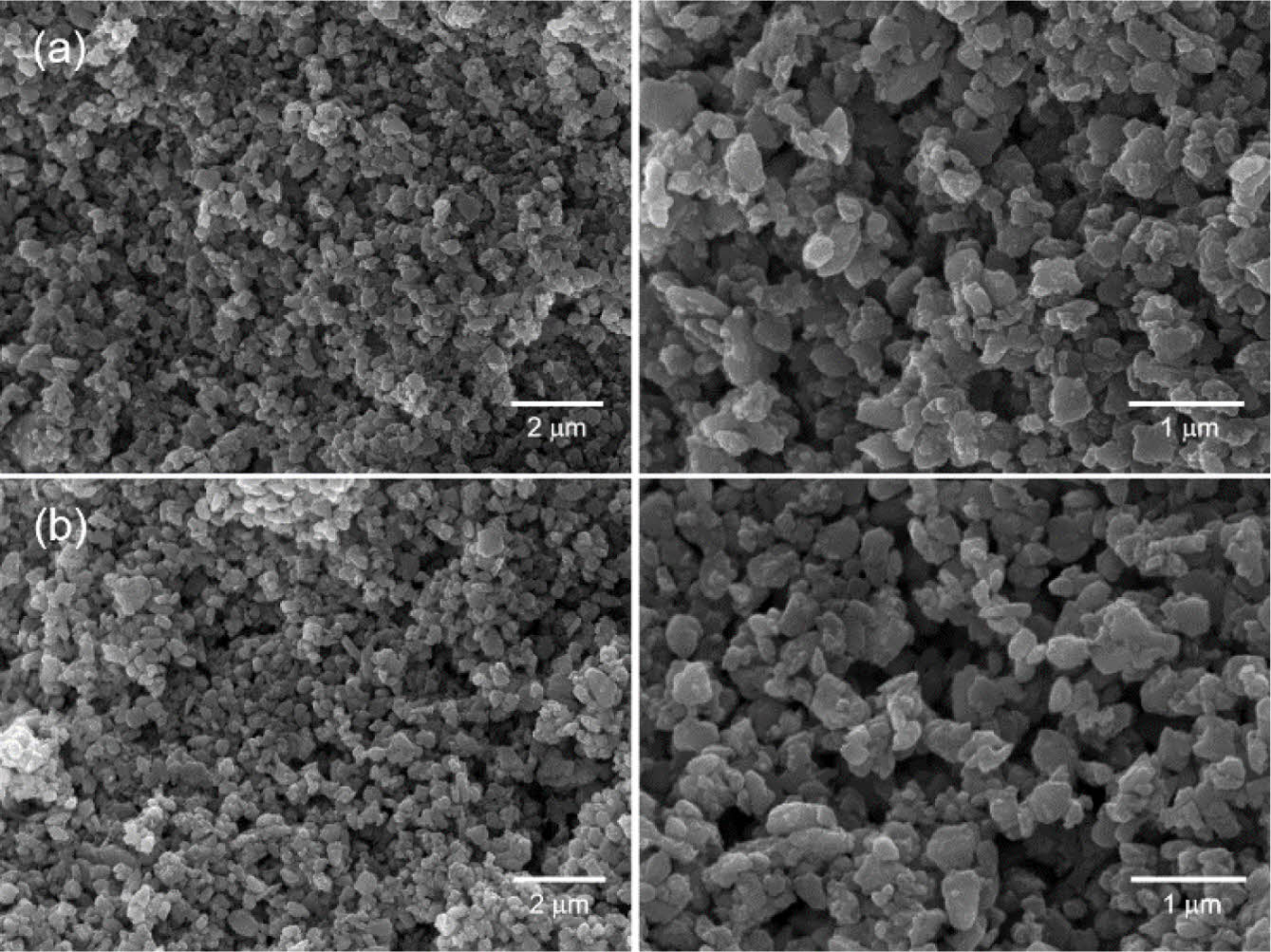 따라서 복합 레진의 기계적 강도를 높이기 위해 Ba-glass 입자의 표면을 개질하였다. 즉 Ba-glass 입자가 액상 레진 단량체와 공유결합을 형성할 수 있도록 입자의 표면에 메타크릴기를 도입하였고, 이들 유기그룹의 도입에 의해서 액상 레진 단량체와 입자의 상분리 현상도 개선시키고자 하였다. 표면 개질된 MPS Ba-glass 입자의 표면 형상을 SEM을 이용하여 관찰한 결과 Figure 1에서 볼 수 있는 것처럼 평균 크기가 표면 개질 전과 거의 유사한 200-300 nm 전후의 입자 형상을 보이고 표면 개질에 따른 입자의 집합체(aggregates) 형성도 관찰되지 않았다.