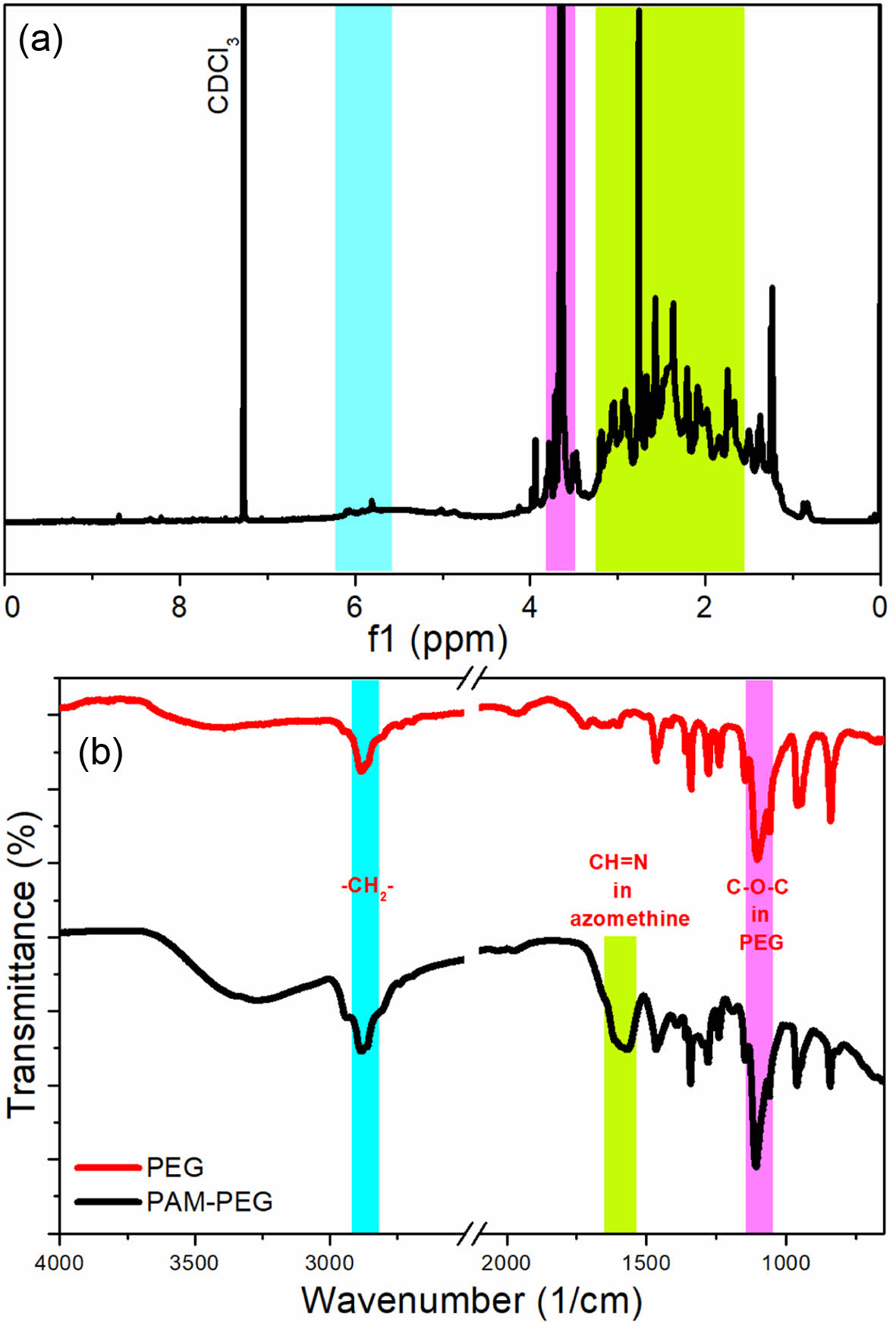 Figure 1 1H NMR: (a) FTIR; (b) spectra of the PAM-PEG block copolymer. |