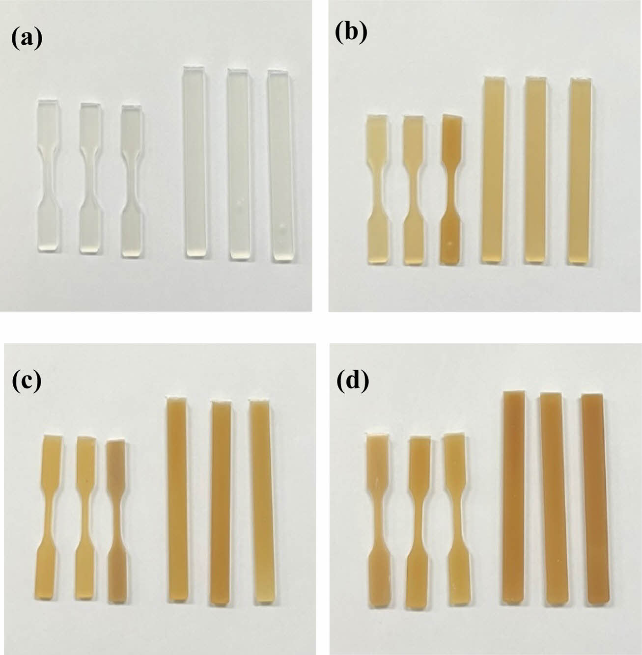 Figure 8 Yellowing according to composition ratio of Si-CNF: (a) 0 phr; (b) 1 phr; (c) 3 phr; (d) 5 phr. |