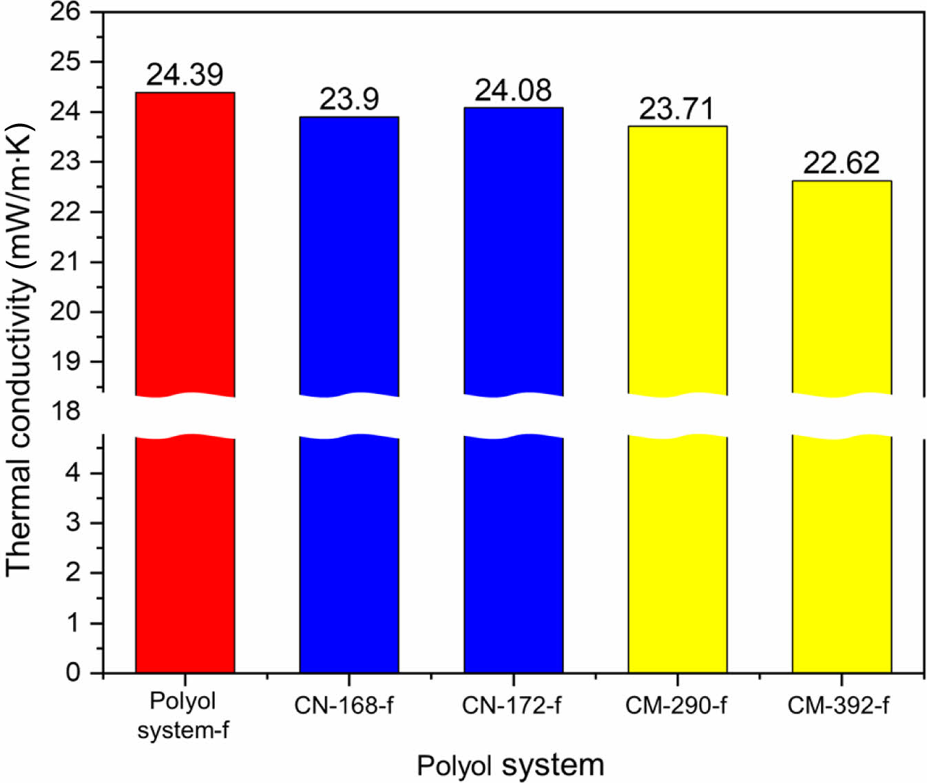 Figure 9 Thermal conductivity of RPUF according to polyol systems. |