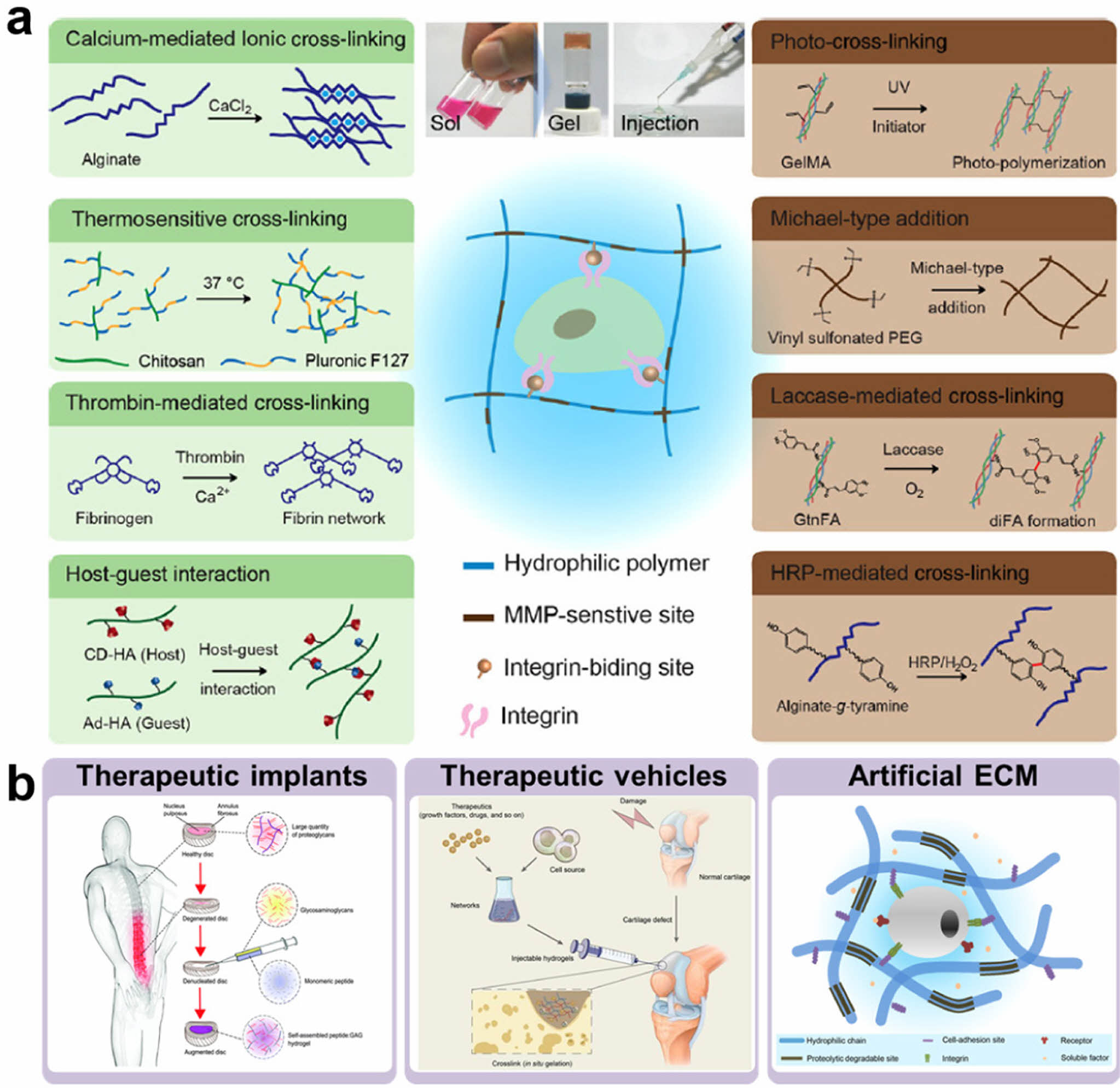 Unlike preformed hydrogels, in situ cross-linkable hydrogel has several advantages. They are minimally invasive to target sites, easy to handle, and capable of encapsulating bioactive molecules, such as cells, growth factors, and drugs.13,14