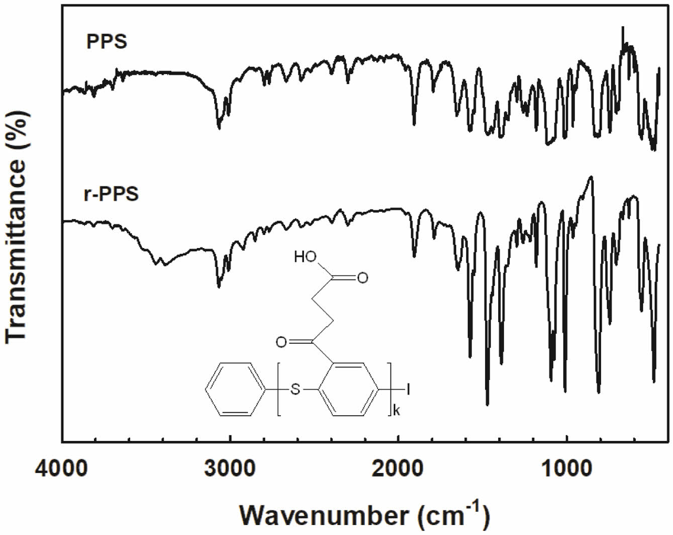 Figure 6 FTIR spectrum of the PPS and the r-PPS reacted in this study. |