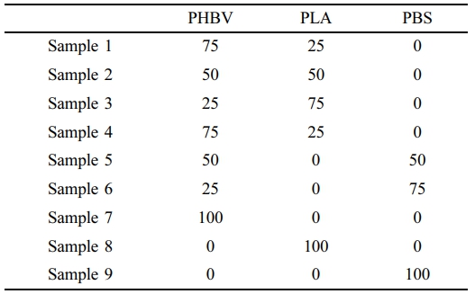 PLA와 PBS는 PHBV의 물성을 보완할 수 있는 생분해성 소재로, 각각 강도와 탄성계수, 연신율 등의 향상에 기여할 수 있다.14,15 PHBV와 PLA, PBS 블렌드의 특성을 최적화하기 위해서는 블렌드 비율의 최적화가 필요하며,16 블렌드 비율에 따른 기계적 성질과 구조 분석이 필수적이다.17