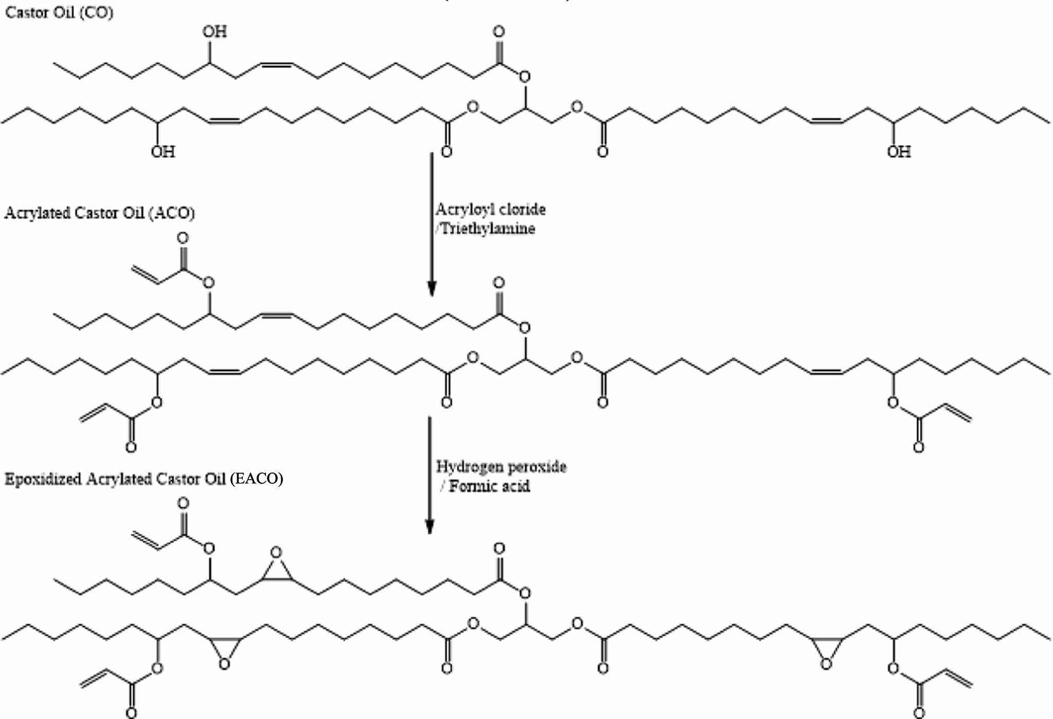 Figure 2 Synthesis of epoxidized acrylated castor oil. |