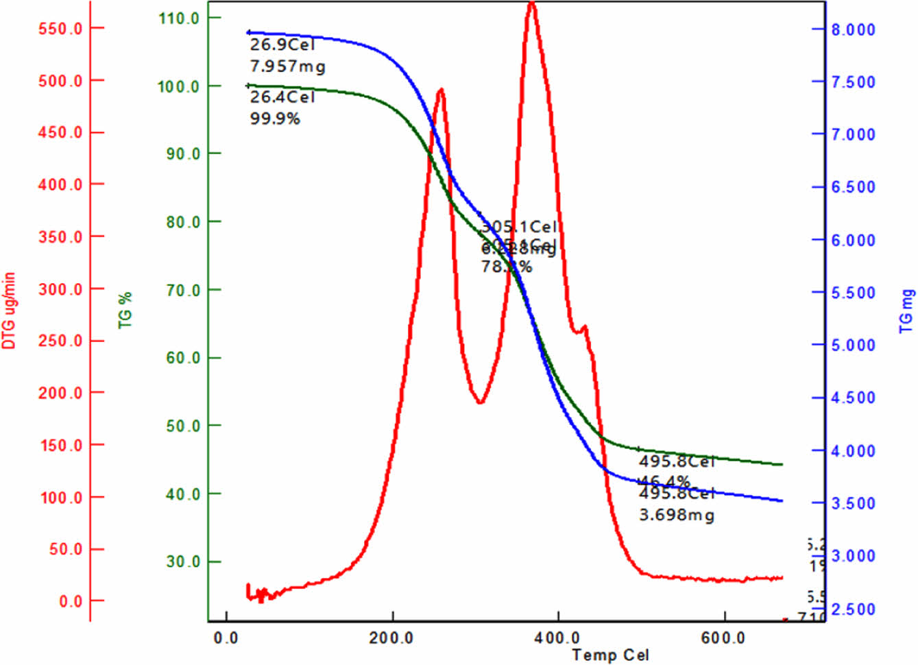 Figure 11 TGA and TGA derivative curves of oleic acid modified iron oxide nanoparticles. |