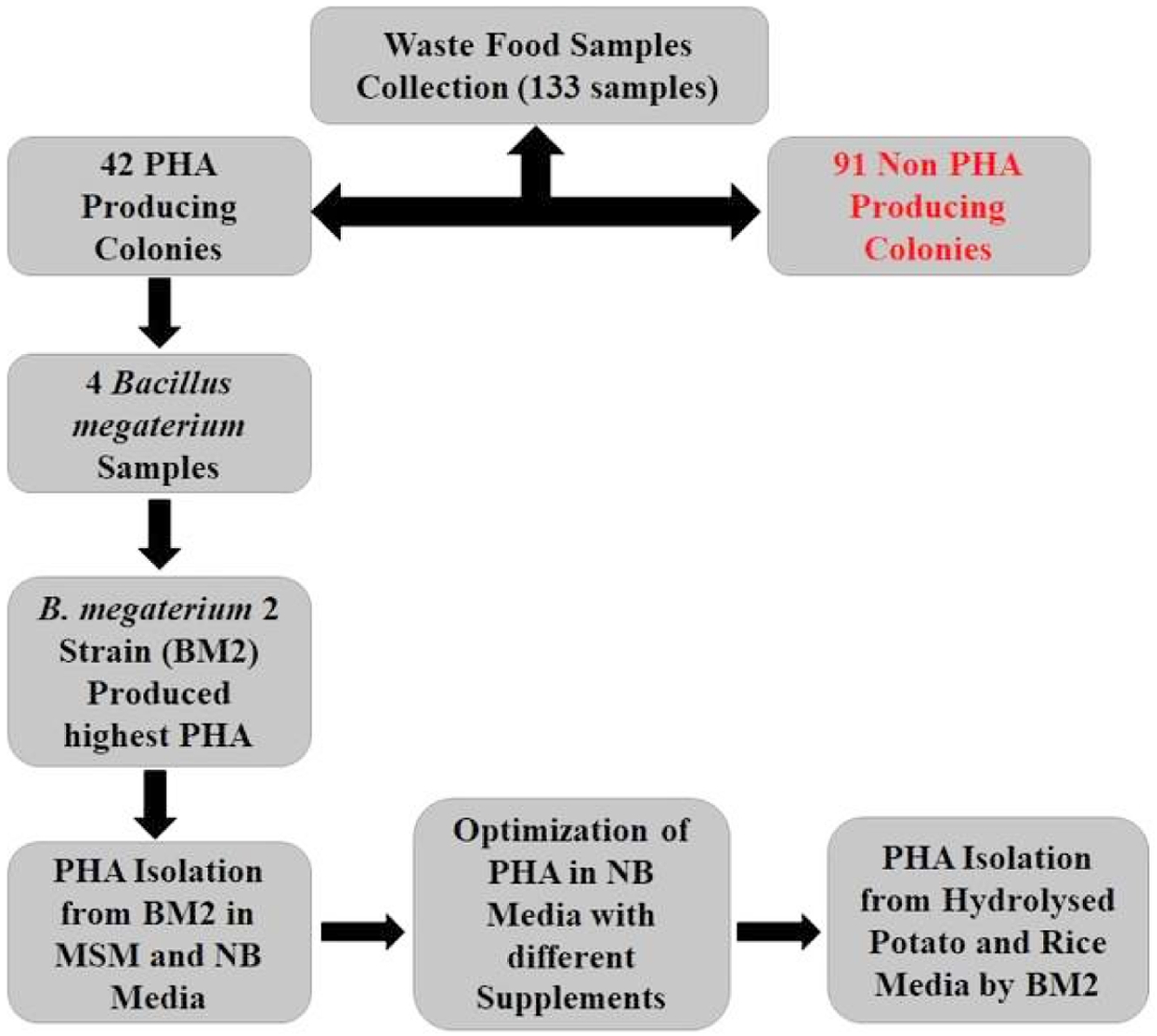 Figure 1 Workflow diagram of current study. Diagram shows screening of PHA accumulating colonies to PHA isolation. |