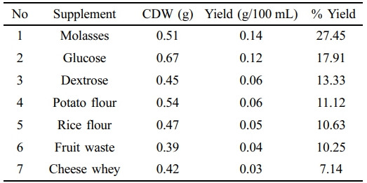 Comparison of the two medium showed that NB supplemented with different supplements have produced higher yields compared to those in MSM.