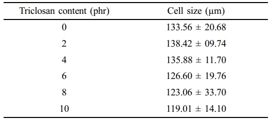 Table 2 Cell Size Measured From Optical Images of the NR Latex Foam Samples Prepared at Various Triclosan Content |