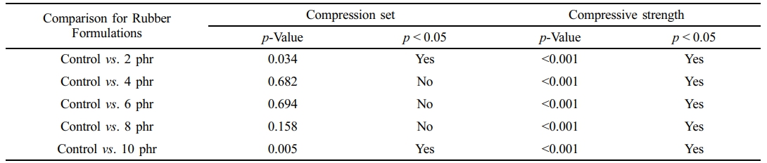 The raw outputs from compression set and compressive strength were statistically analyzed with the SigmaPlot program (SPSS Inc., IL, USA). Differences among groups were examined by using a one-way analysis of variance followed by a Tukey comparisons test. Differences were considered to be statistically significant at p-values less than 0.05.