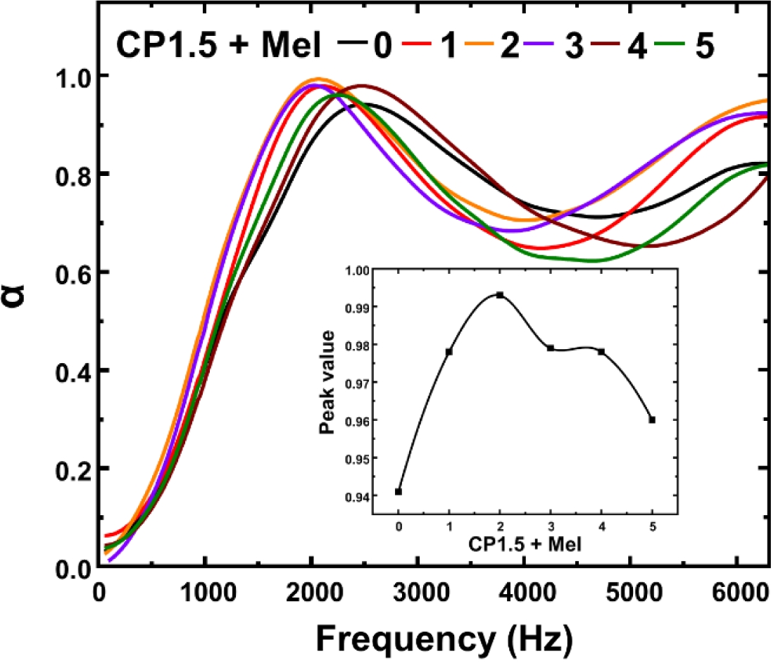 Figure 6 Sound absorption coefficient according to melamine particle contents with dispersant. |