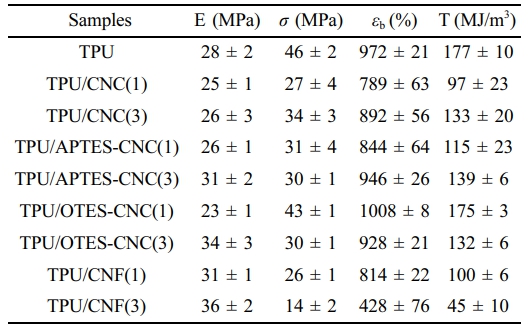 Table 2 Mechanical Properties of TPU/nanocellulose Composites |