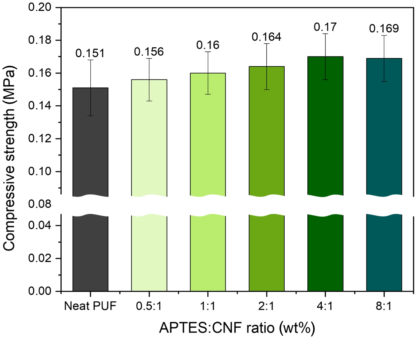 APTES-CNF와 PU의 향상된 상용성은 PU 내에서 CNF의 효과를 강화하여 PUF의 강도 향상을 야기할 수 있다.