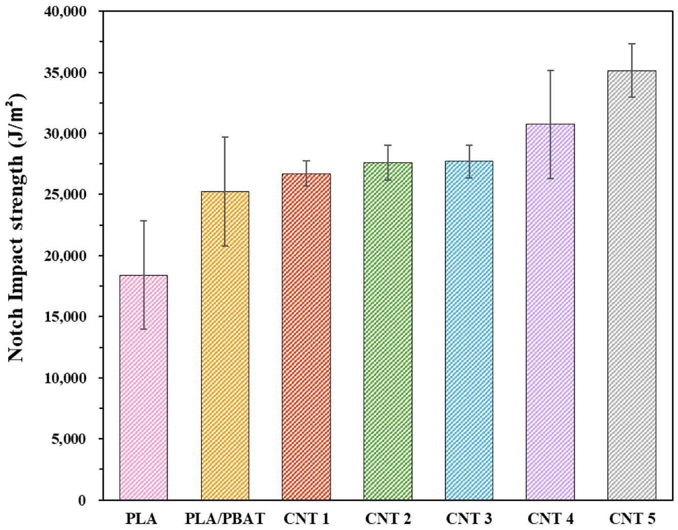 Figure 4 Notch impact strength of biodegradable PLA/PBAT blend with CNT. |