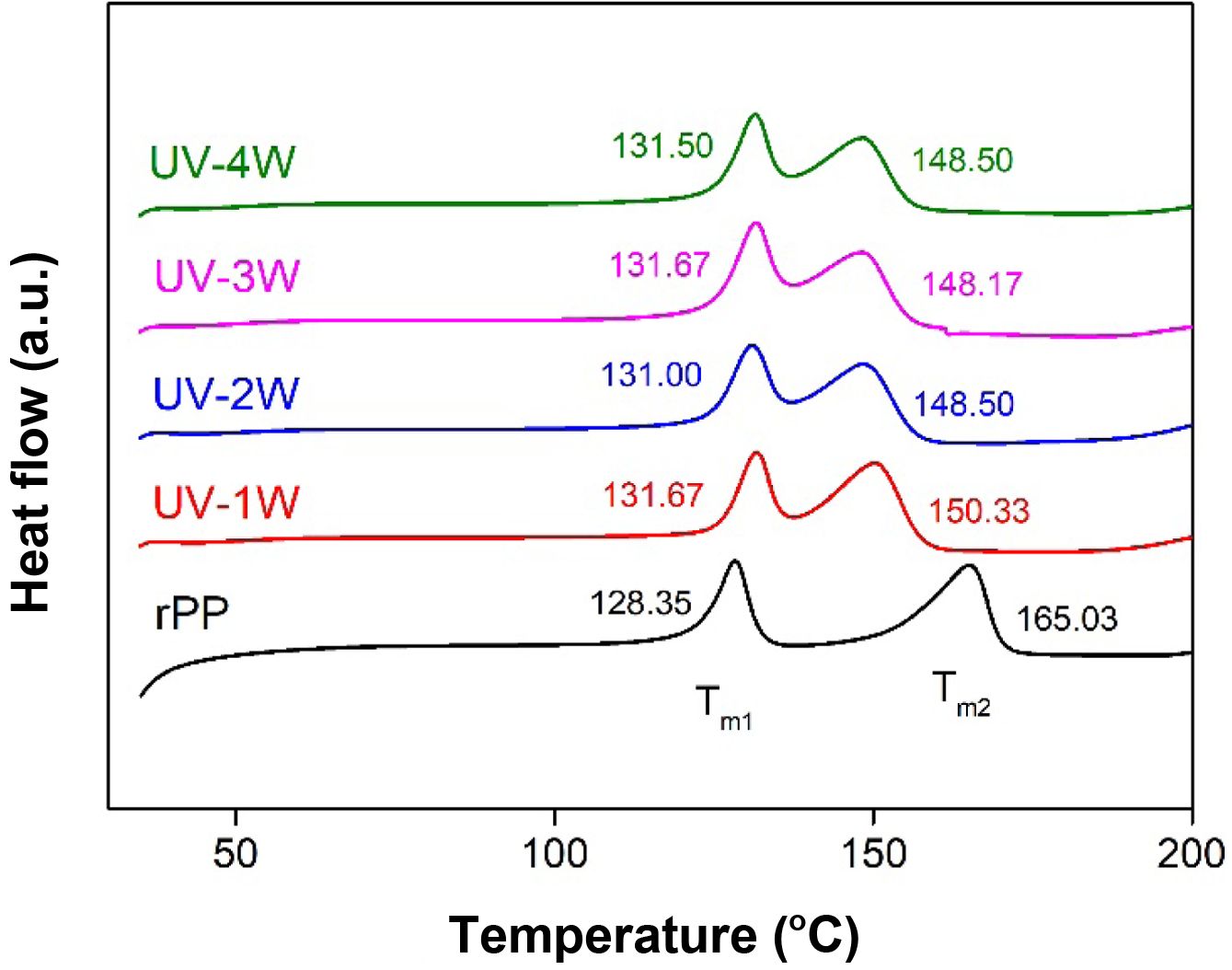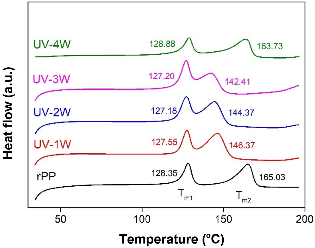 Figure 4 DSC curves of recycled PP with different UV aging duration. |