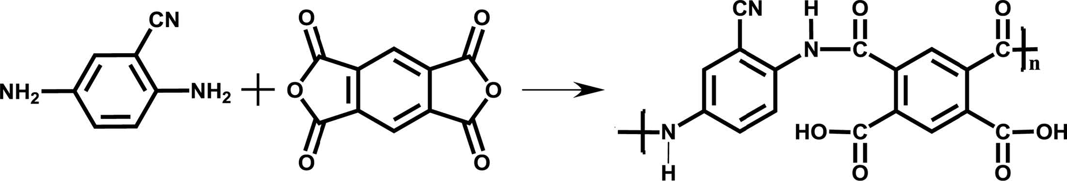 Material Synthesis. The 2-cyano-1,4-phenylene diamine (cy-PPD) was purchased from Kolon Industries, and 1-methyl- 2-pyrrolidinone (NMP) and pyromellitic dianhydride (PMDA) were purchased from Sigma Aldrich. Cy-PPD and PMDA were purified by sublimation under high vacuum twice. Equimolar amounts of cy-PPD and PMDA were dissolved in NMP to a concentration of 10 wt%. The mixed solution was stirred for 10 h at 0.5 ℃ under a nitrogen atmosphere. Then, a PAA solution was finally obtained.