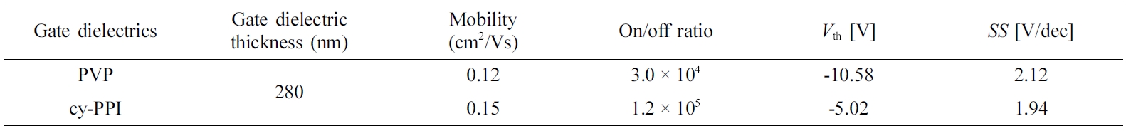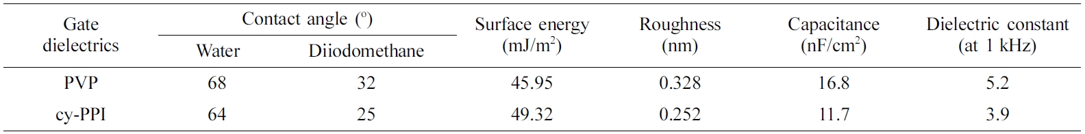 Table 1 Surface and Dielectric Properties of PVP and cy-PPI Gate Dielectric Layers |