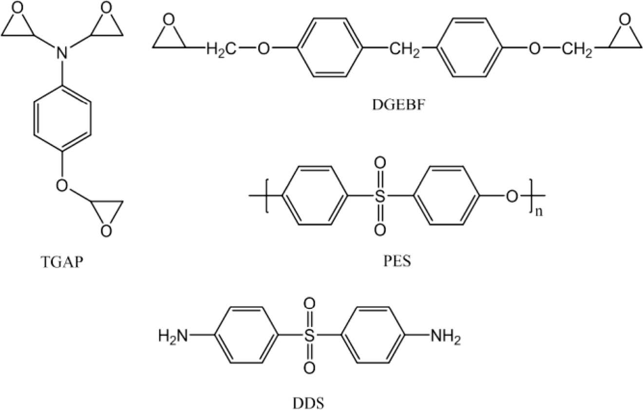 Chemical structures of TGAP, DGFBF, PES, and DDS.