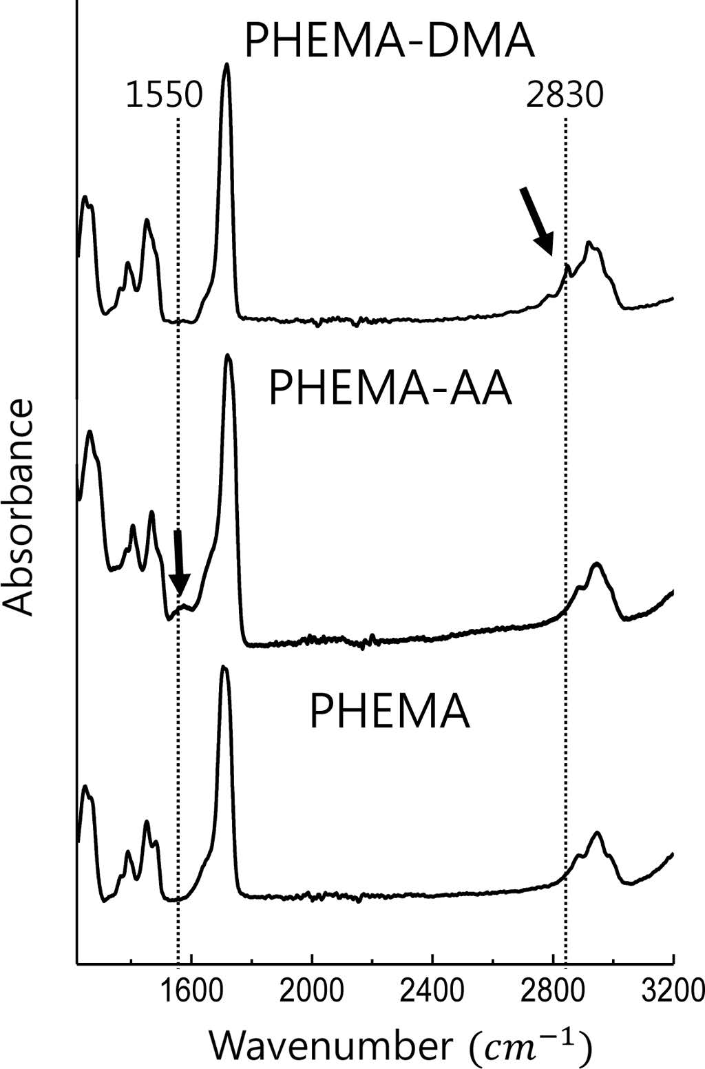 FTIR spectra of PHEMA copolymers.