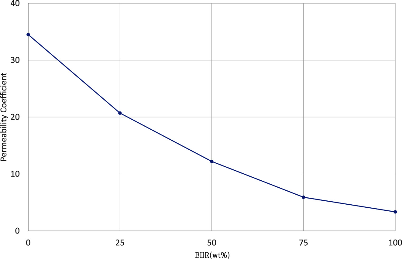 (2) BIIR의 함량이 증가할수록 내기체투과성은 선형적으로 증가하였다.