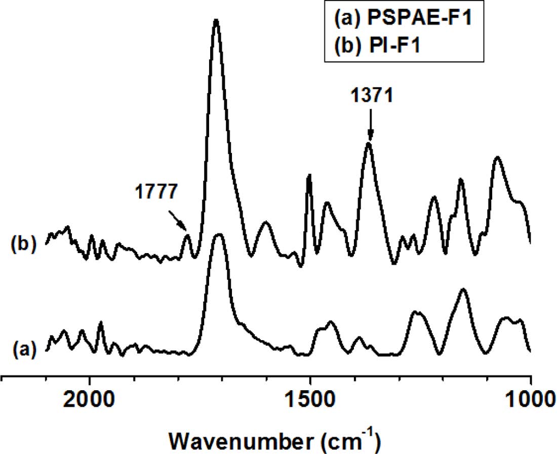 Figure 5 FTIR spectrum of (a) PSPAE-F1; (b) PI-F1. |
