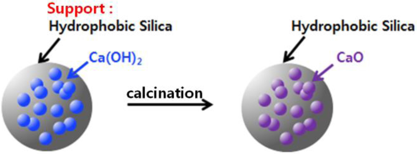 CaO/SiO2 mixture using hydrophobic nanosilica as a sup-port.