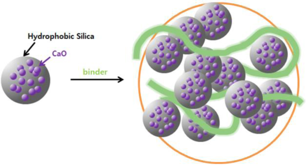 Scheme of the preparation of CaO/SiO2 composite incorporating a binder.