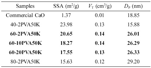 따라서 다음의 BET 측정에서는 CaO 함량과 바인더의 함량에 따른 결과만을 측정하였다.