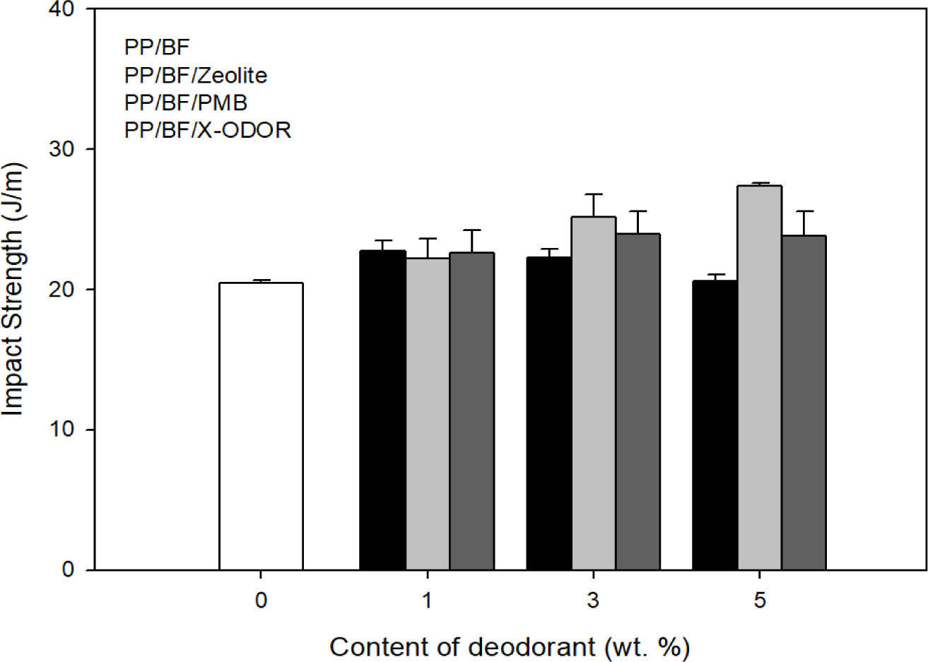 Figure 4 Impact strength of PP/BF composite as a function of deodorant content. |