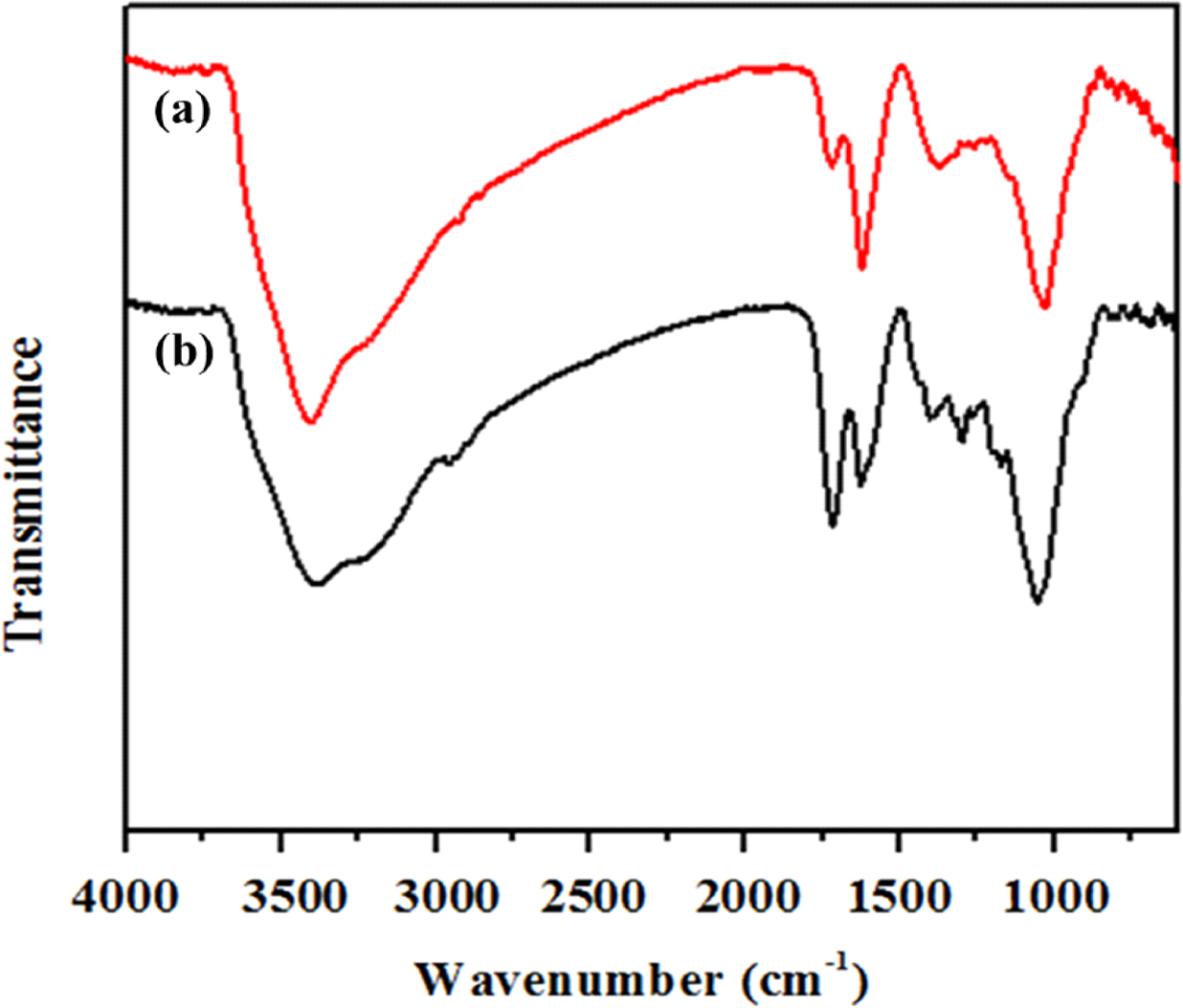 Figure 3. FTIR spectra of (a) OCNT; (b) OCSi.