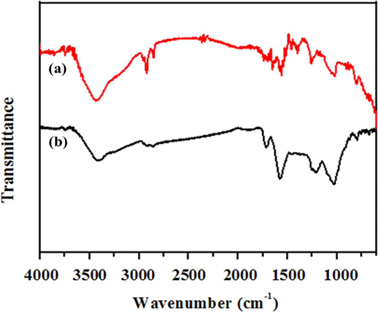 Figure 2. FTIR spectra of (a) GO; (b) GOSi.