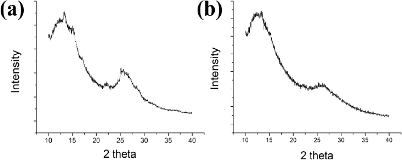 Figure 7 X-ray diffraction (XRD) prepared by evaporation of (a) luteolin; (b) luteolin:ethyl cellulose=10:1. |