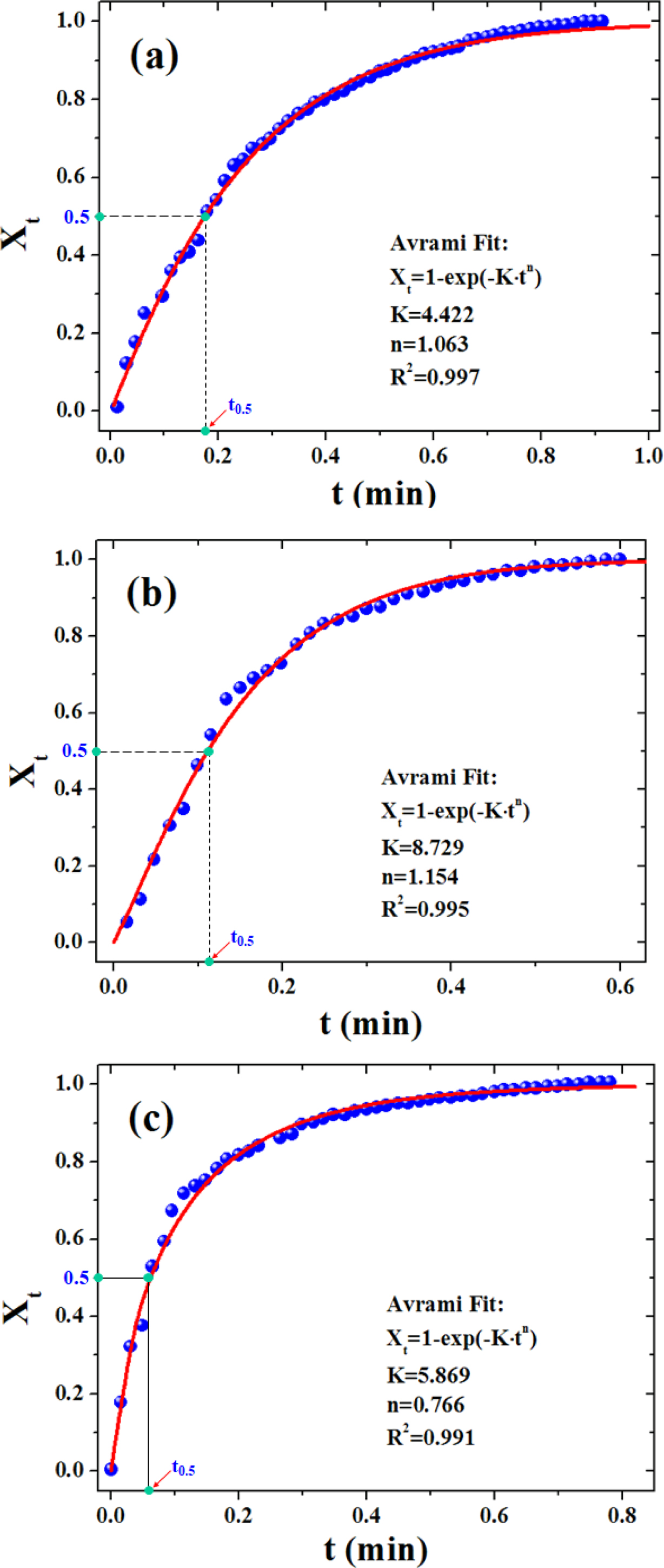 As is known, the isothermal crystallization kinetics of the samples can be evaluated using the Avrami equation36: