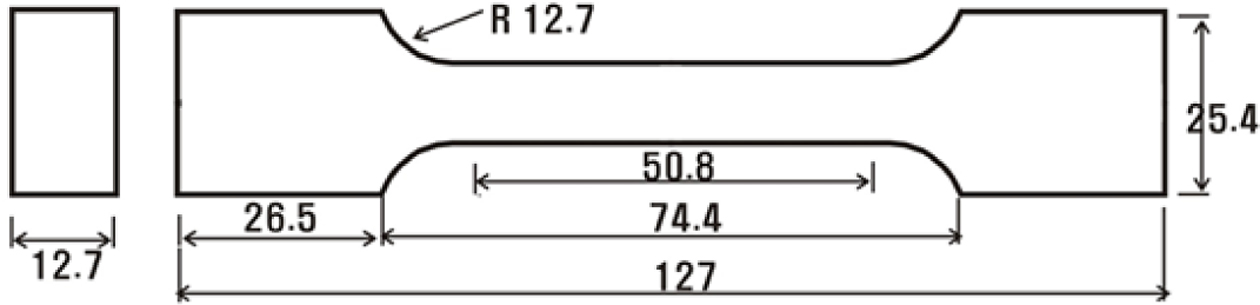 Figure 1 JANNAF specimen for the tensile test (unit: mm). |