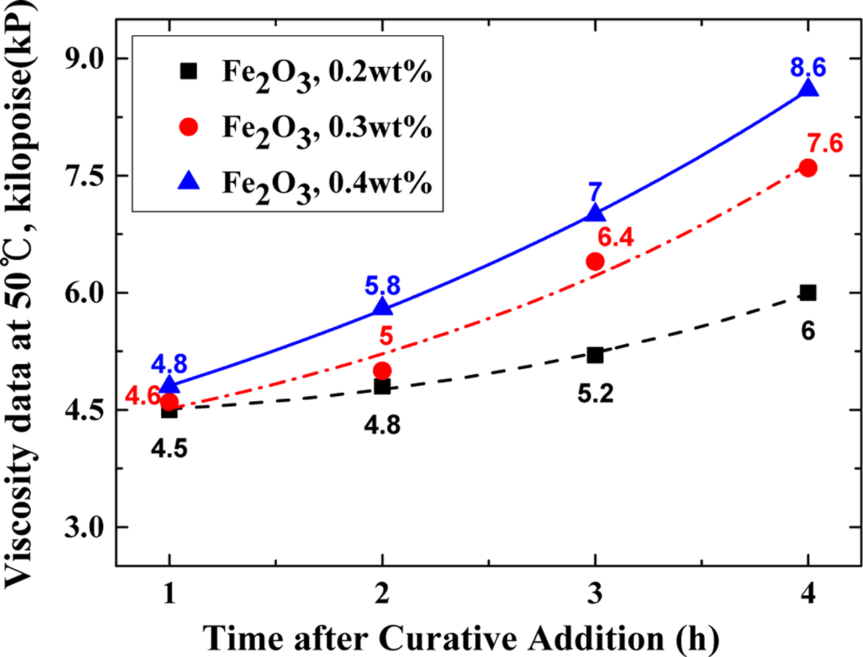 Figure 3 Effect of the Fe2O3 content on viscosity. |