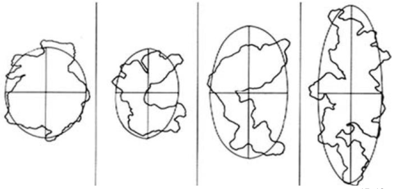 Modelling Aggregates. Figure 1 shows several asymmetric dendritic aggregates.20,21 For simplicity, the center of mass and average area were computed, and the aggregates were approximated as ellipses with major and minor axes. This model also assumed that porosity of the carbon aggregates was 59% in which density is decreased with increasing amounts of interstitial fluid, if porosity is increased. Furthermore, in this study the carbon aggregates were non-fractal and had higher resistance to shear flow and stable structure, and the restructuring behaves depending on the connectivity of the primary particles was neglected.