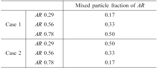 Figure 14 shows the cross-correlation calculated using eq. (17) for different mixing fractions of various particles. The values were lower for case 2, in which elongated particles acted as bridges.