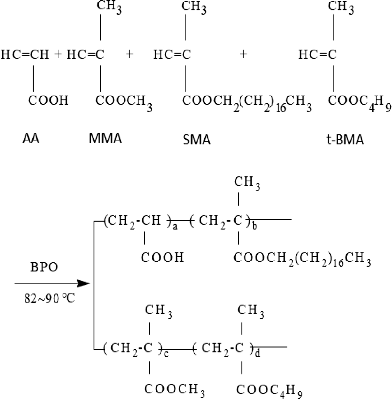 Figure 1 Figure 1. Synthesis of copolymers using AA, MMA, SMA, and t-BMA as monomers. |