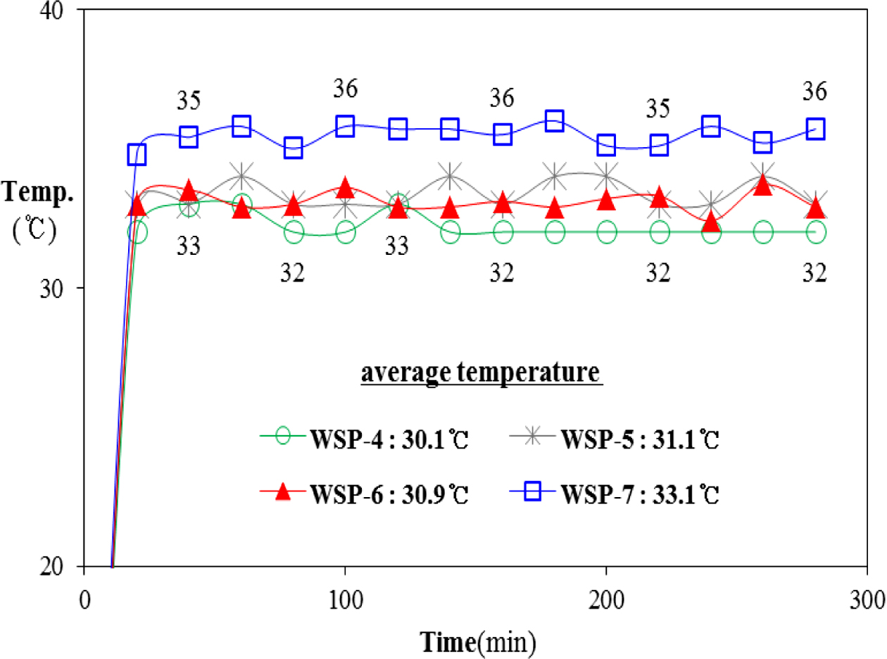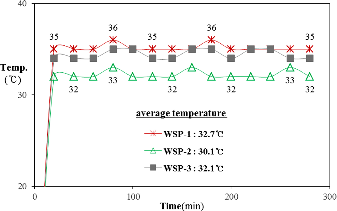 Figure 11 Figure 11. Variation of heat transfer temperature for WSP-1, WSP-2, and WSP-3 depending on time. |